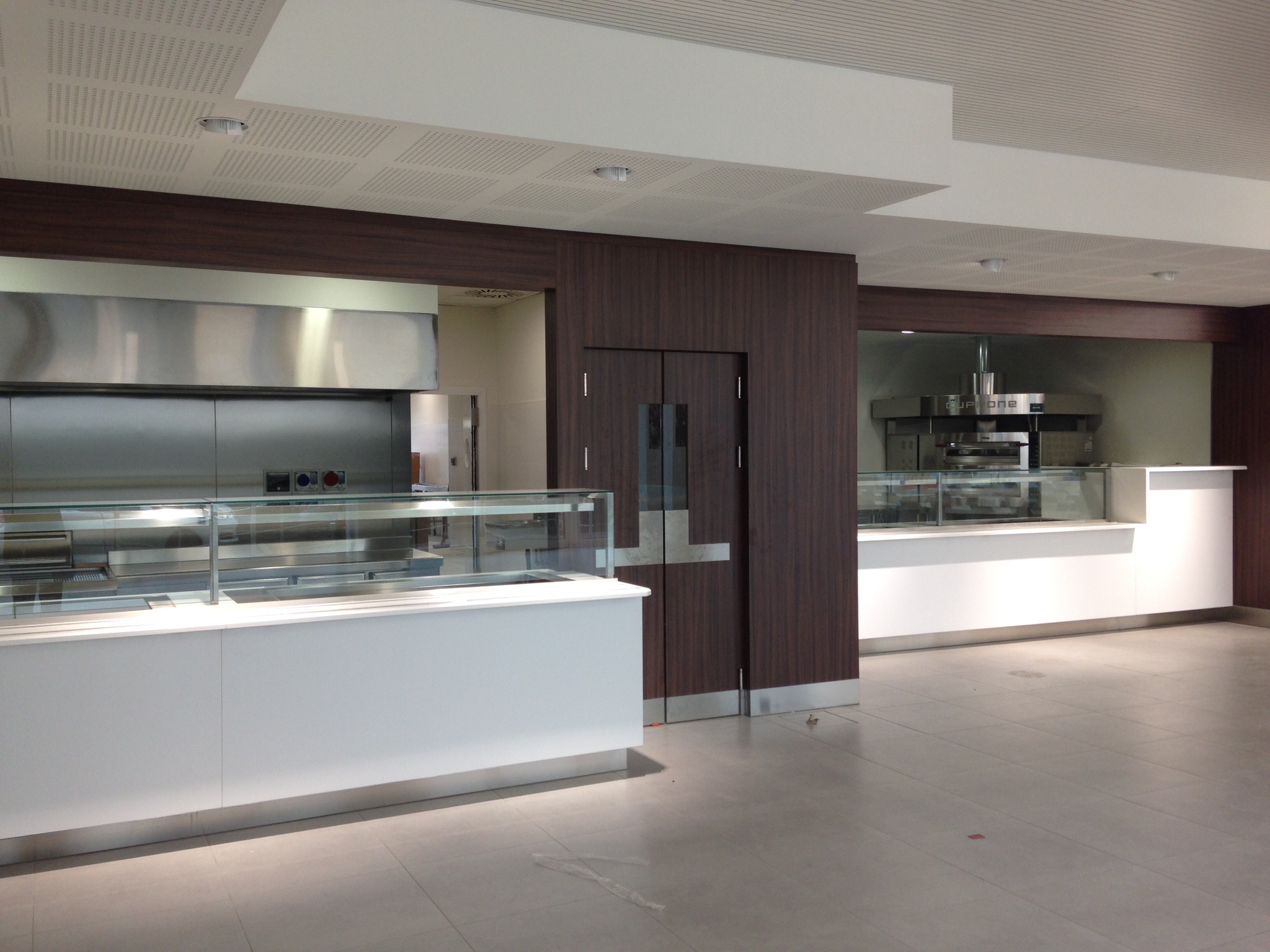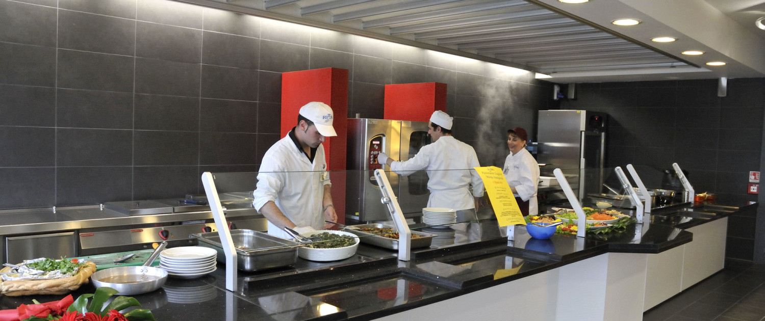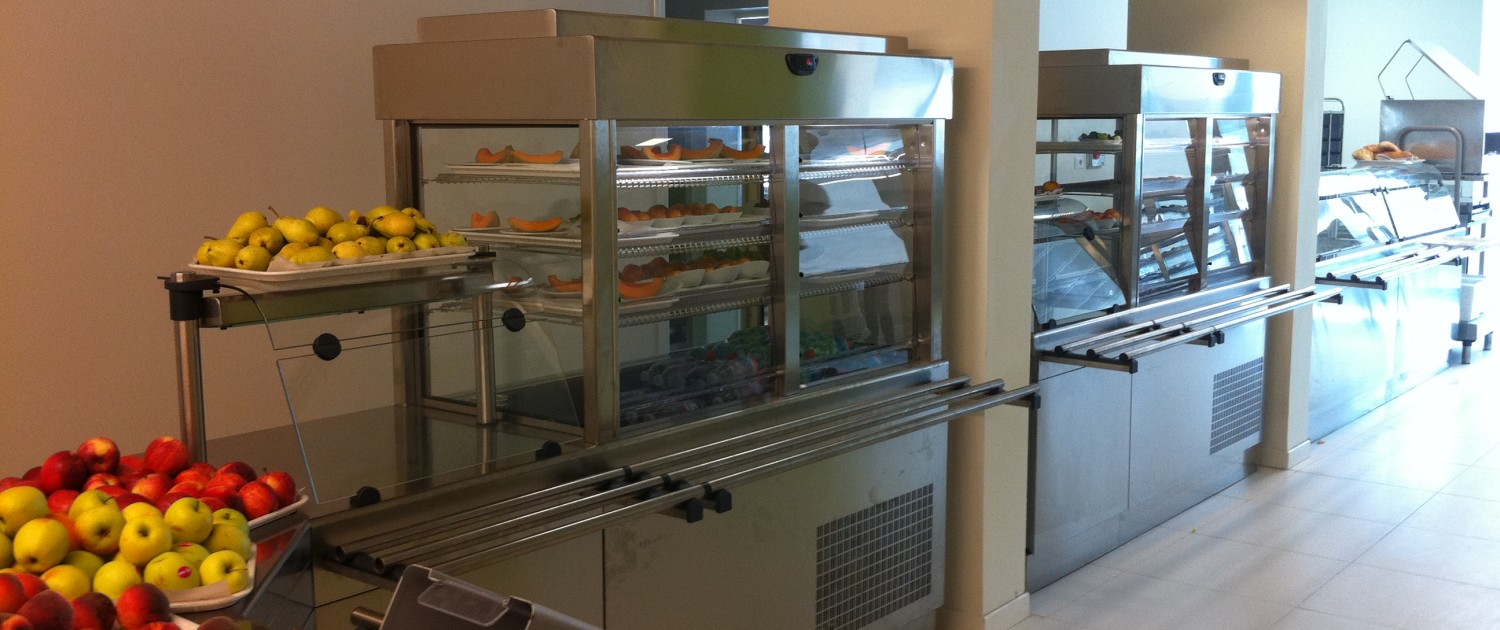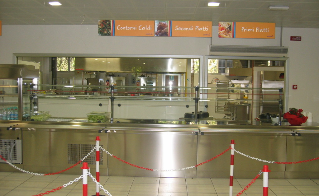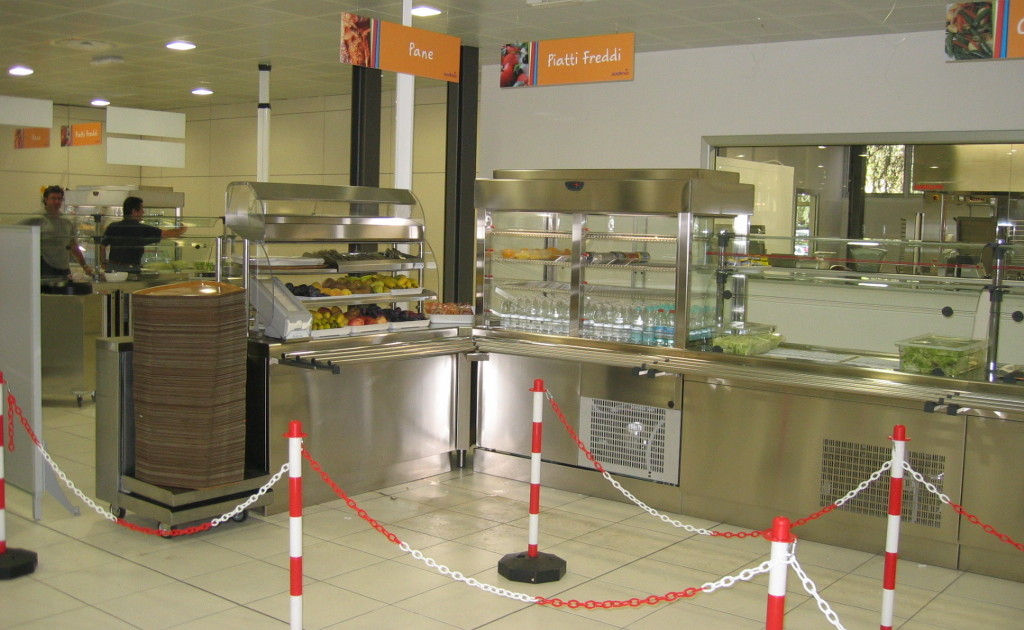 Le linee di distribuzione possono inoltre contenere elementi di cottura (grazie all’inserimento di moduli self-service particolare costruzione) al fine di poter realizzare delle aree specifiche di cottura espressa (“corner primi piatti”, “corner griglia” o “corner pizza”). Le suddette aree di cottura cc.dd. “in linea” disporranno di uno specifico impianto di aspirazione, a seconda dei casi, indipendente o collegato all’impianto di estrazione fumi della cucina principale che potrà consistere in semplici cappe di aspirazione o in specifici SOFFITTI ASPIRANTI A PLAFONI INERZIALI (così come illustrato di seguito nell’ambito degli Esempi di realizzazioni effettuate).